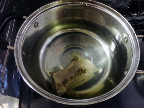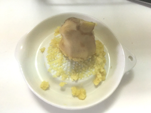 2.鍋でだしを温める。その間ショウガをすりおろす。