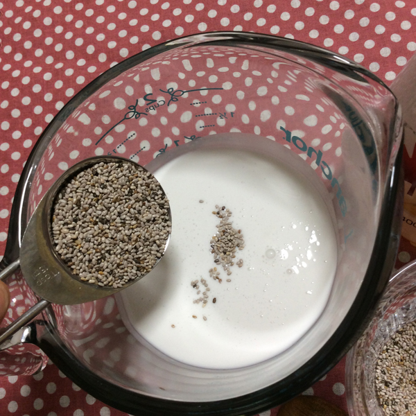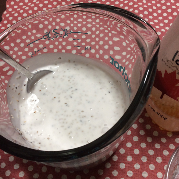 チアシードと甘味料を入れてよーくかき混ぜます。