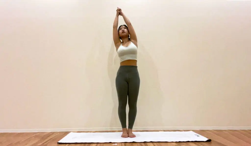 1.基本姿勢「山のポーズ」(タダアサナ)。