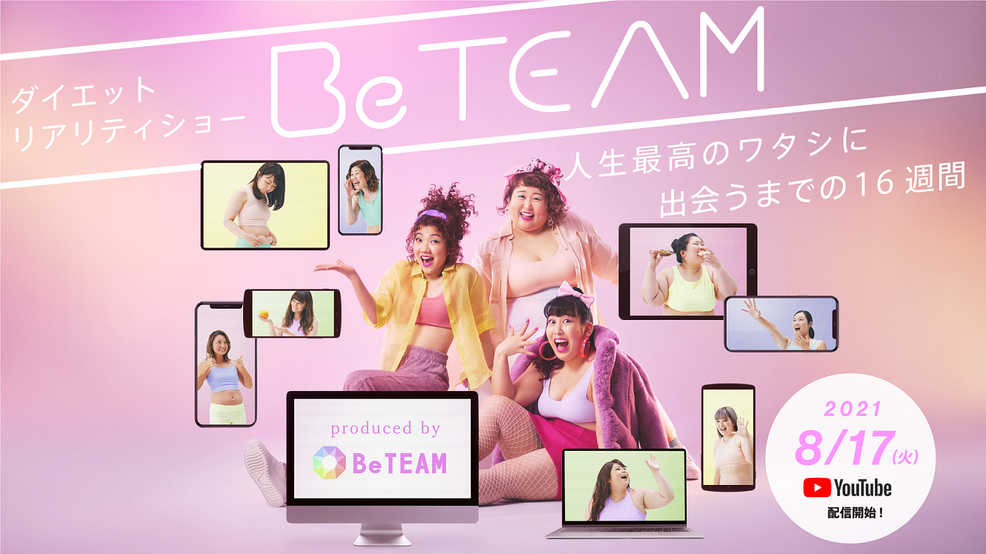 またBeTEAMのスペシャル企画として、『ダイエットリアリティーショー番組』をYoutubeにて配信!ぽっちゃり系モデルから、YouTuber、役者や空間デザイナー兼ヨガ講師など様々なバックグラウンドの21才~50才の女性たち8人が参加し、BeTEAMによるダイエット模様をお届けします。ダイエット目標は、8人でなんと合計102キロの減量!