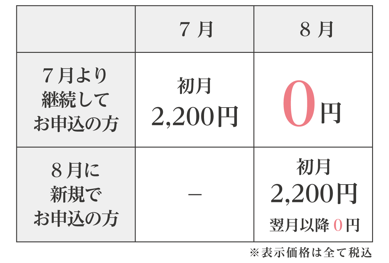 8月度も引続き、継続して休会のお申込みをされる方の手数料は弊社負担(無料)とさせていただきます。