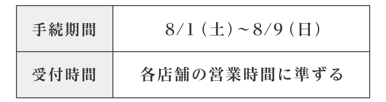 その為、8月も引続き特別休会のお申込みを店舗にて承ります。
