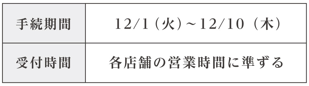 下記の期間、特別休会のお申込みを店舗にて承ります