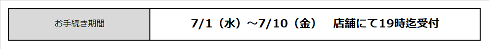 【6/15UP】7月度の特別休会手続き、休会手数料について