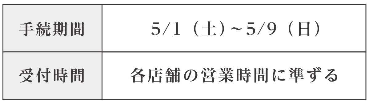 下記の期間、特別休会のお申込みを店舗にて承ります