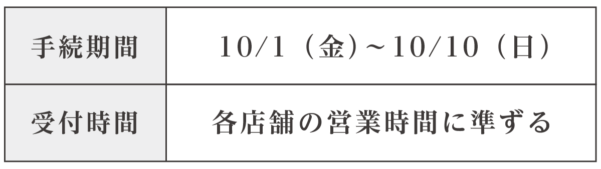 下記の期間、特別休会のお申込みを店舗にて承ります。