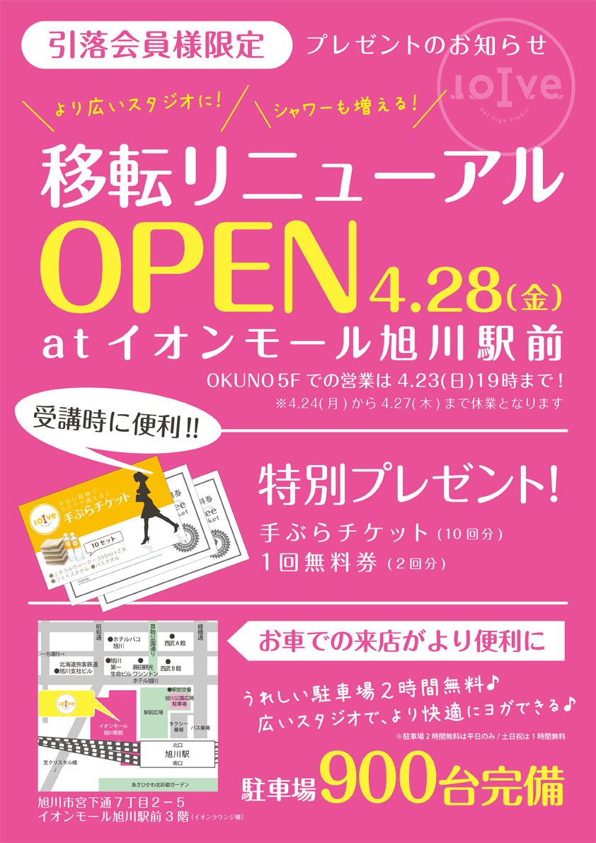 ロイブ旭川店は、4/28に店舗を移転リニューアル致しました。