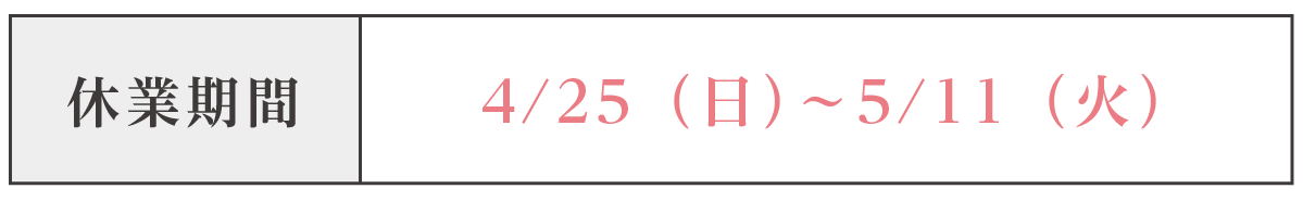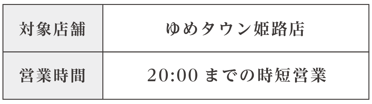 ※緊急事態宣言の延長及び、商業施設の指示、情勢により休業期間に変更がある場合がございます。