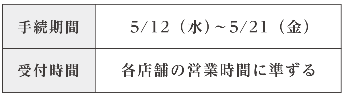 下記の期間、特別休会のお申込みを店舗にて承ります。