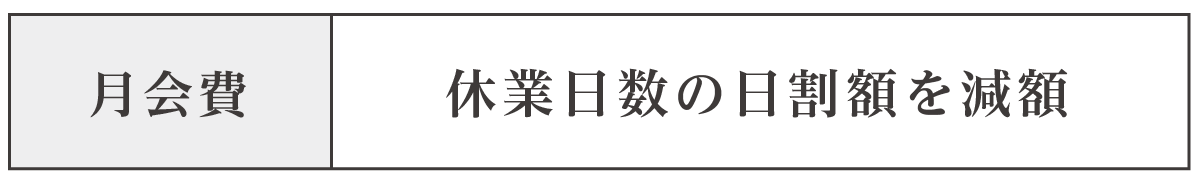 月会費につきましては、受講履歴問わず、休業日数の日割額を減額とさせていただきます。
