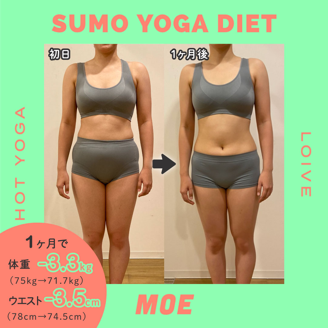 1ヶ月間、SUMO YOGAのダイエットメソッドとSUMO YOGAの効果を促す食事法でダイエットにチャレンジしていただきました。