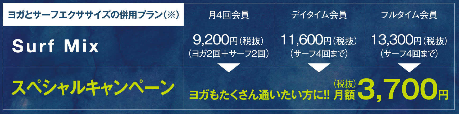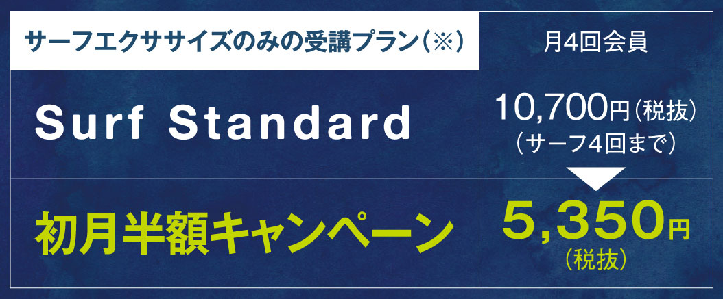 ※サーフエクササイズのみのプランは「月4回会員」のみになります。