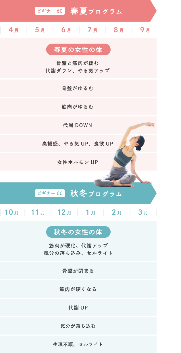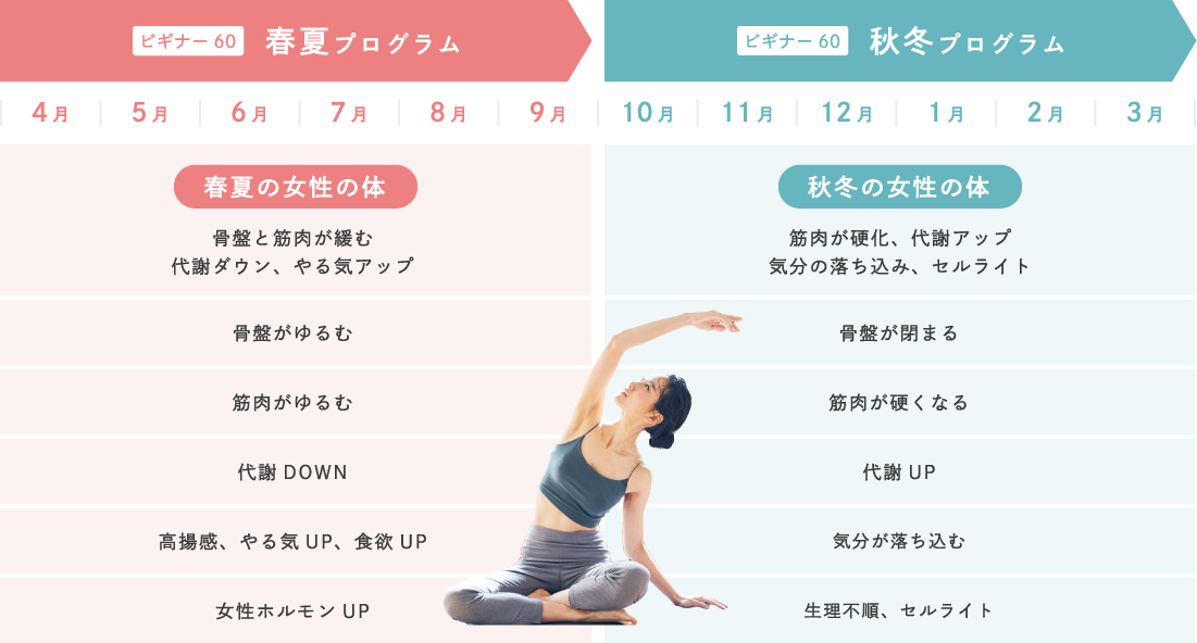 レギュラープログラム「スタンダード60」のレッスン内容を「春夏編」「秋冬編」で変更しています。