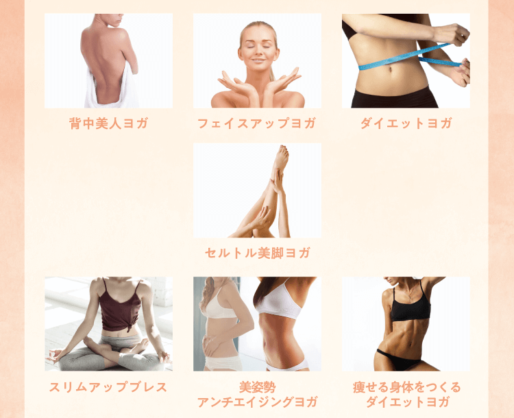 背中美人ヨガ フェイスアップヨガ ダイエットヨガ セルトル美脚ヨガ スリムアップブレス 美姿勢アンチエイジングヨガ 痩せる身体をつくるダイエットヨガ