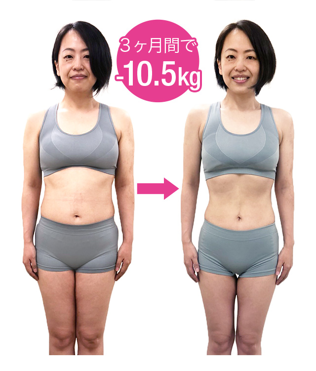 | 体重 | 60kg | 49.5kg | -10.5kg |