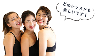 初心者も安定の定番から経験者向けのステップUPレッスン。海外で話題のプログラムまで、女性のニーズに合わせて多彩にご用意しております。※店舗ごとに、毎月プログラムを入れ替えています。