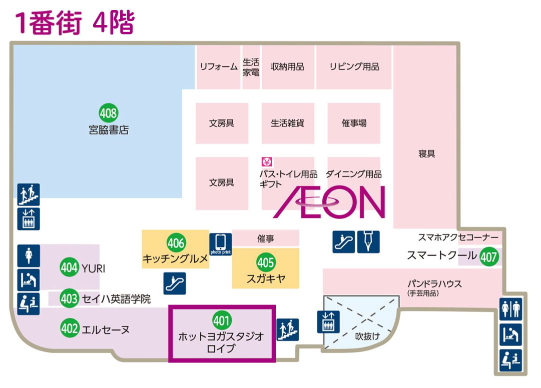 ※営業時間は変更になる場合がございます。最新の営業時間については「トピックス」もしくは「レッスンスケジュール」にてご確認ください。