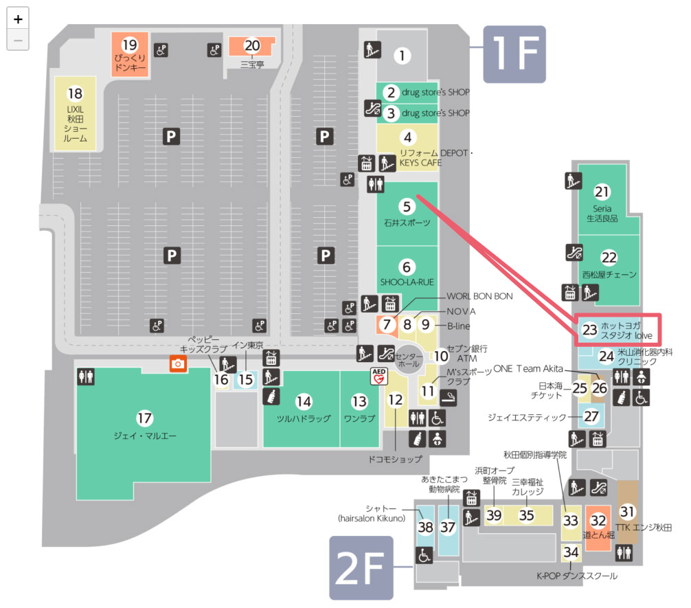 フレスポ御所野 B棟2Fに入る女性専用ヨガスタジオ